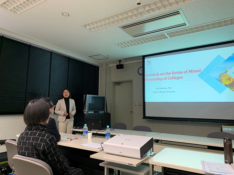 2月1日,罗先锋教授在高等教育研究中心作了题为《高校混合所有制办学形式研究》的报告,并就2014年国内开始探索高等教育混合所有制办学这一前沿性改革实践的具体样态做了分享 www91,1月28日和2月1日,胡永红副教授分别在大学入试中心与高等教育研究中心作了题为《中国高考改革新动向——以选择权的扩大为中心》的报告,就国内2014年以来推进的高考改革新动向做了分享,广岛大学高等教育研究中心的7名教授与15余名研究生参会,报告受到了与会教授的高度赞誉,两位分享者也收到了对方希望加强定期学术交流的邀请。