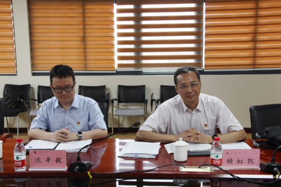 6月13日下午,省委教育工委主题教育协调推进四组组长(厦门大学党委原副书记)赖虹凯,成员(厦门大学离退休处秘书)沈辛毅一行莅临我校指导学习贯彻习近平新时代中国特色社会主义思想主题教育工作,校党委书记徐志怀 91牛,常务副校长陈民伟,党委副书记陈熙贞,组织部部长翁小玲等同志参加了座谈。