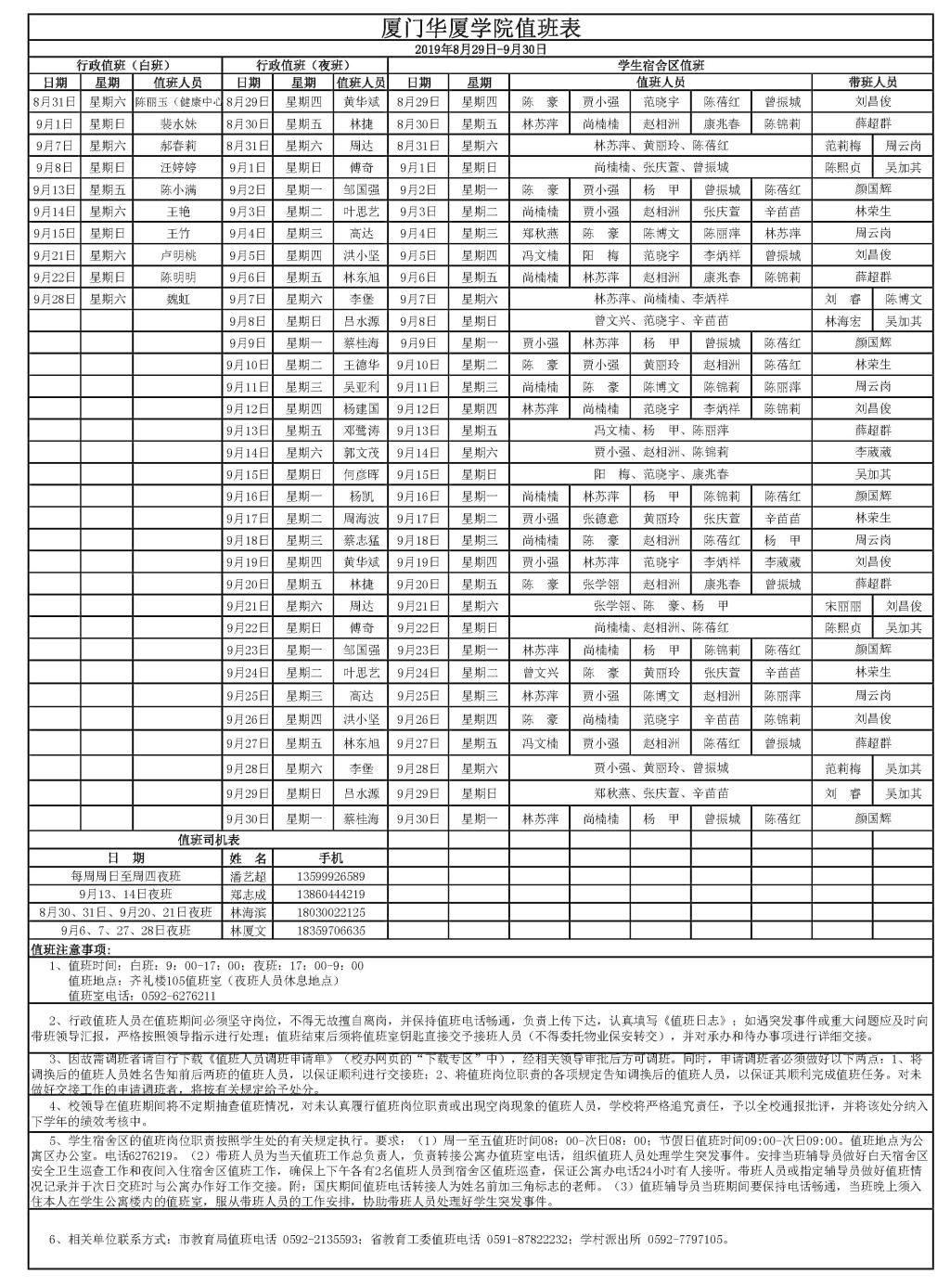 www912019年9月值班表(8月29日-9月30日)