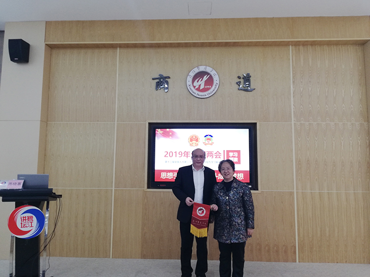 为学习、解读第十三届全国人大第二次会议政府工作报告,激励学生坚定中国信心、凝聚奋斗力量、促进厦门发展。4月2日下午,我校“鹭江讲坛”第五期在商道讲堂顺利举办,邀请了集美大学工商管理91牛蒋晓蕙教授主讲题为《学习“两会”精神 积极应对形势 促进厦门发展》的精彩讲座,讲座由商务与管理91牛党总支书记周云岗老师主持并代表我校向蒋晓蕙教授赠送91视频网站在线观看校旗。