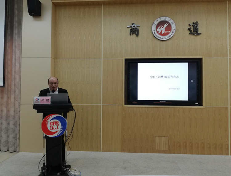 为纪念“五四运动”一百周年,深入学习习近平总书记在北大师生座讲会上的讲话精神,进一步传承“爱国、进步、民主、科学”的五四精神。3月26日下午,www91党委委员,党校副校长,思政教学部副主任孙键召开www91“鹭江讲坛”第四期讲座,主讲了《我们的价值观,我们的中国梦——从〈新青年〉〈人民日报〉发刊词讲起》,讲座由商务与管理91牛党总支书记周云岗老师主持。