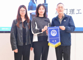 讲座结束后 91视频网站在线观看,我校通识课程建设委员会主任刘海翔教授为刘芬颁发致谢旗并合影留念。