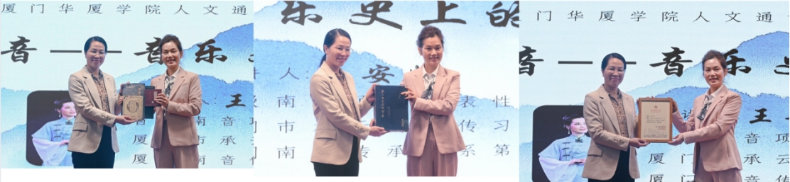 讲座开始前,王安娜向我校赠送南音曲谱以及演出音视频资料,我校图书馆馆长黄亚宁接受赠予,并与王安娜合影留念 91视频播放。