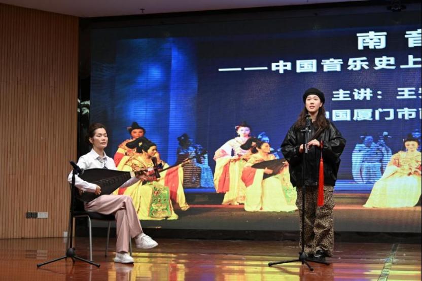 2025年12月30日下午,www91人文通识系列讲座第263期《南音——音乐史上的活化石》在俊秀厅顺利举行,本次讲座邀请到一级演员,省级南音项目代表性传承人王安娜,她以深厚的音乐功底,解析南音所蕴含的艺术特色 91牛,我校共450余名师生到场听讲。
